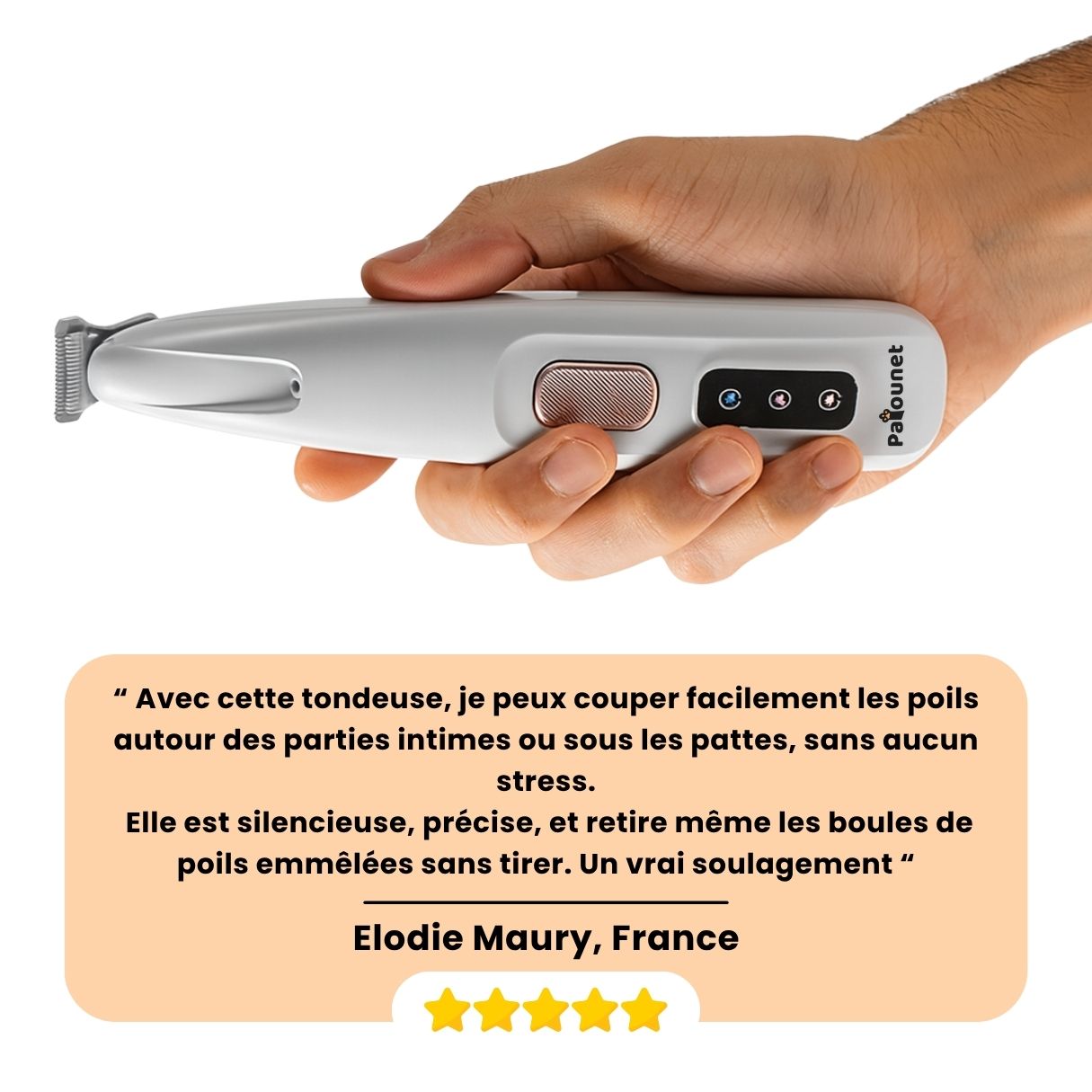 C’est pourquoi nous avons conçu la tondeuse Patounet™, spécialement pensée pour préserver le confort, la sérénité et le bien-être de votre compagnon.